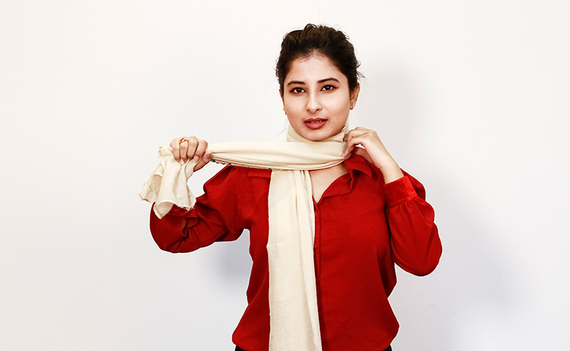 স্কার্ফ-টাকে গলার এক সাইড থেকে গিট্টু (knot) দিলেই হয়ে গেলো এই সহজ স্টাইল-টি।
