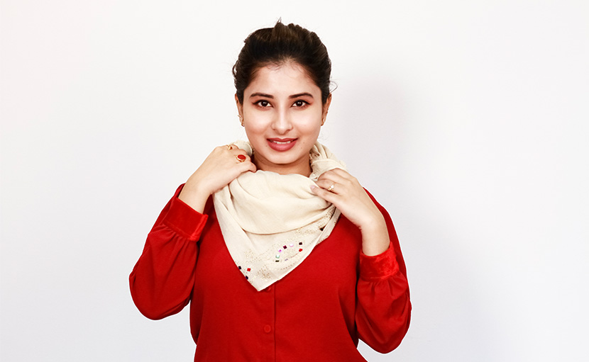 খুবই সিম্পল। আমরা বেশিরভাগ এমনভাবে স্কার্ফ-টা পরে থাকি। গলার দুই পাশ দিয়ে নিয়ে ডাবল ফোল্ড করলেই হয়ে গেল।