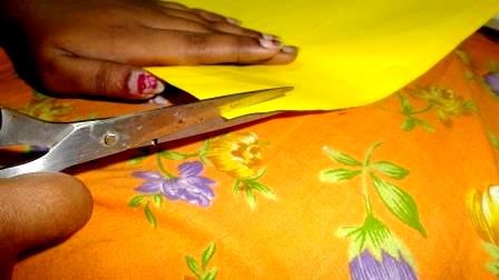 প্রথম ধাপ: বাজারে অনেক রকম রঙিন কাগজ পাওয়া যায়। যেমন- লাল, হলুদ, গোলাপি রঙের । কাগজের আকৃতি বানানোর জন্যে দুইতিন রঙের কাগজ কিনে আনুন । অথবা সাদা কাগজ কিনে তাতে রং করে ফেলুন দু’পিঠ । তারপর পাতলা করে কাগজ কেটে নিন ।